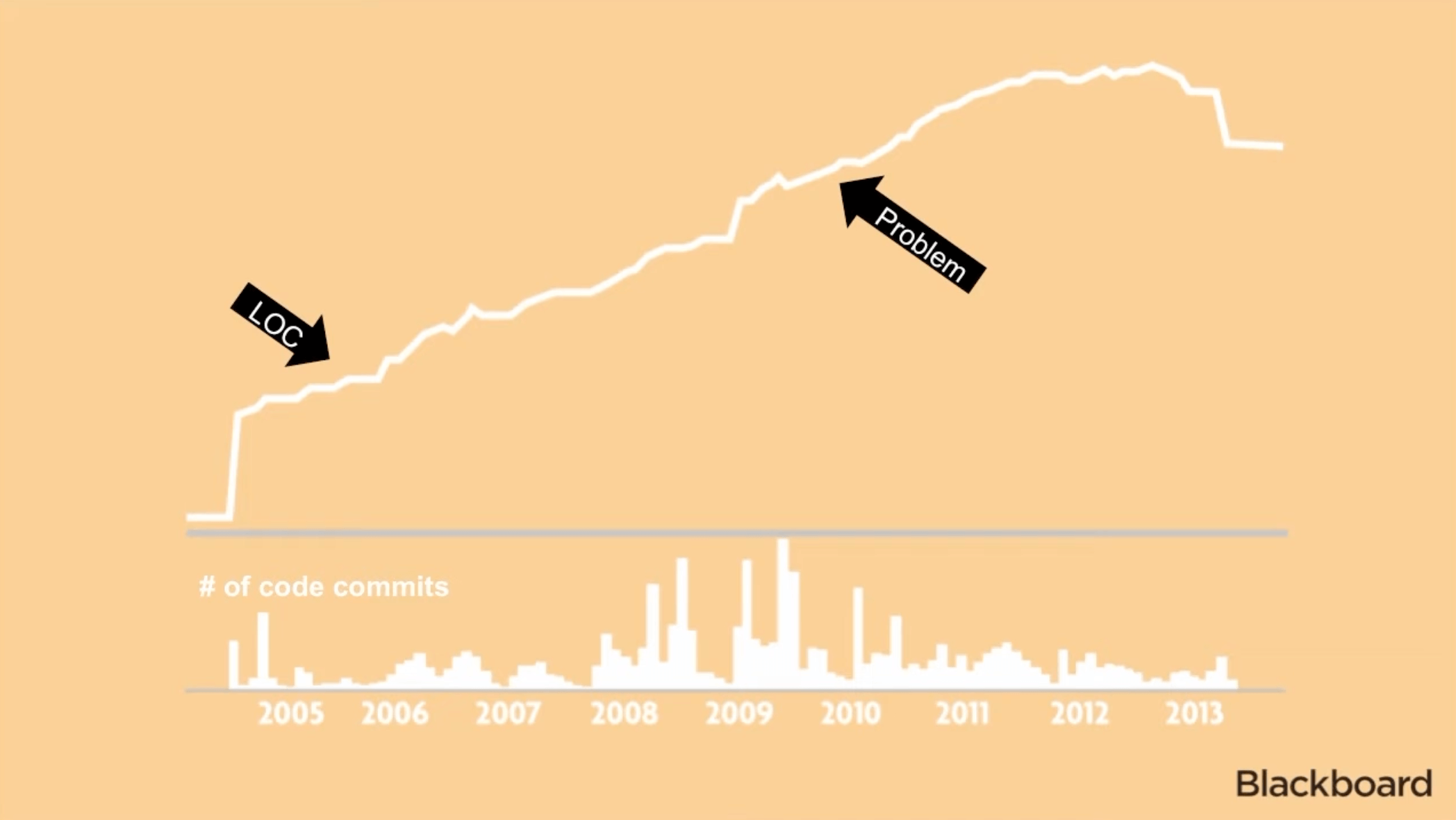At the DevOps Enterprise Summit 2014, David Ashman, former Chief Architect at Blackboard, recalls how his engineering organization became less agile and stagnant due to mounting technical debt. Ashman’s red flag was a significant change in the number of code commits.